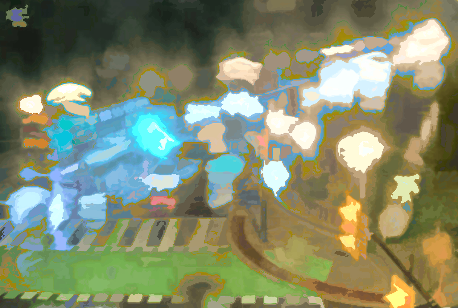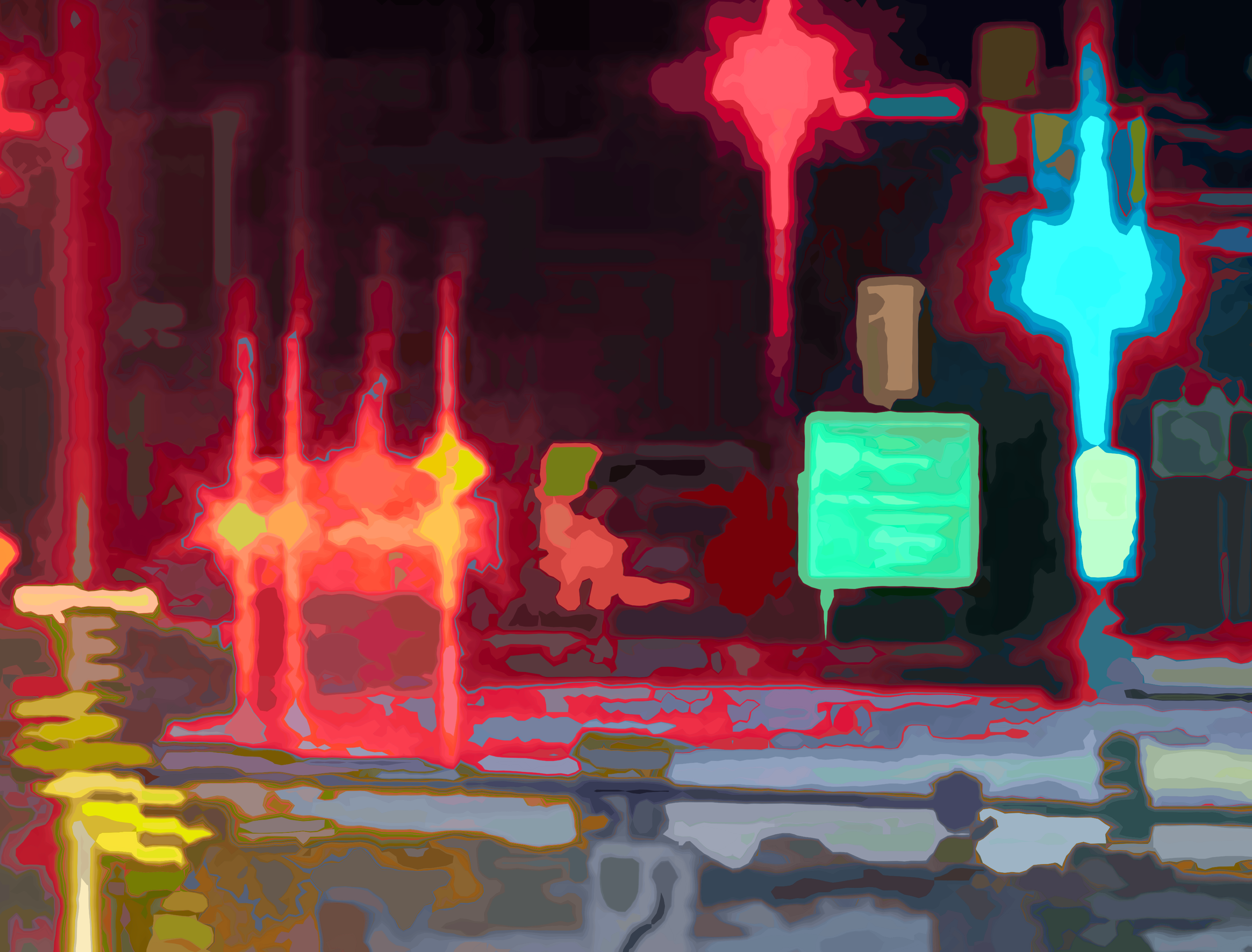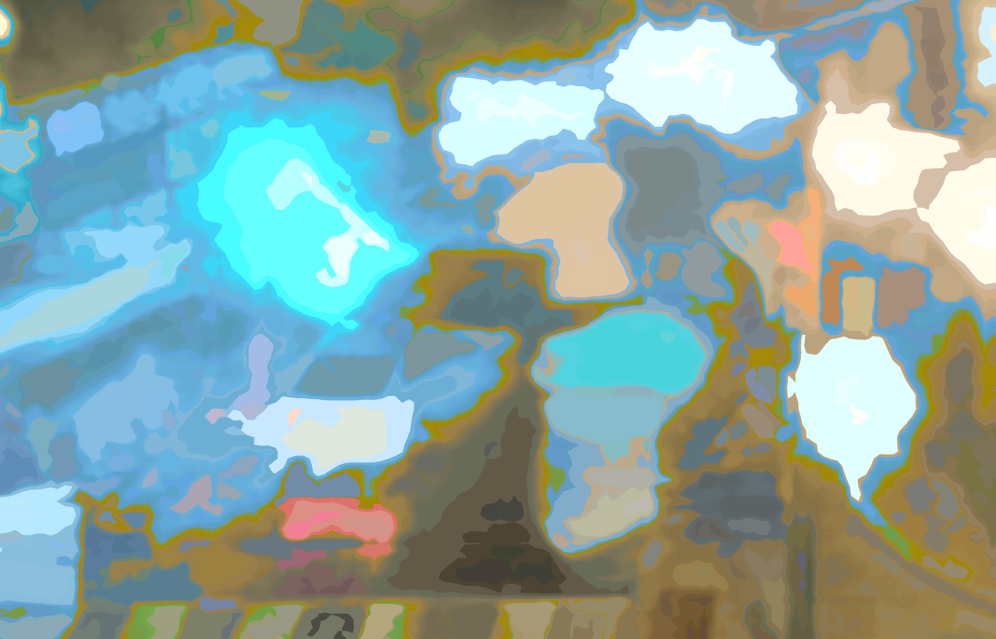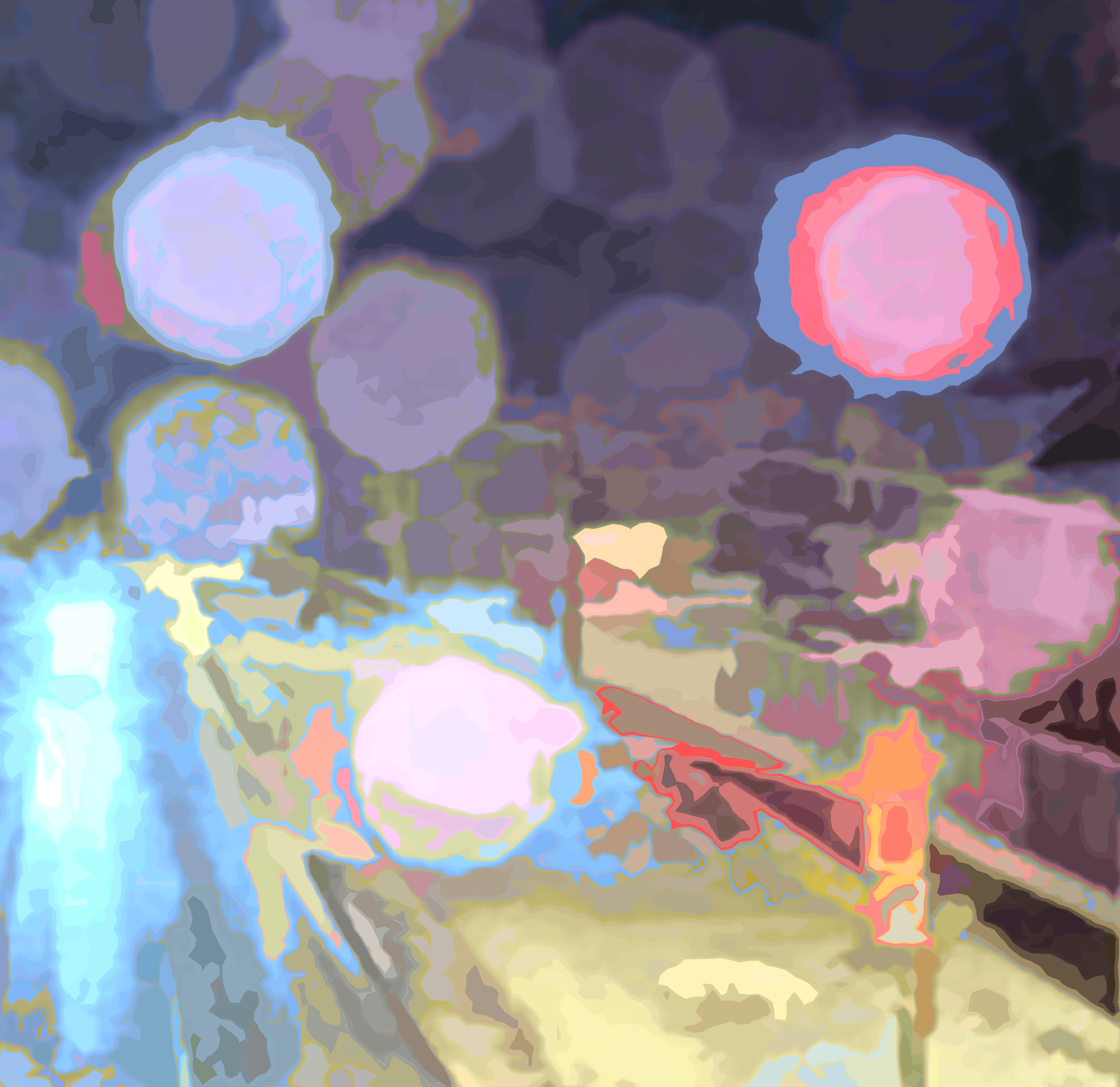 The math treats each pixel of a source photo as if it were elevation data for a topographic map, with contour lines of equal brightness. Certain contour lines are selected to appear in the picture as the boundaries of shapes. Each shape has a single colour, determined by the colours of the source image pixels within. The artist controls the transformation from pixels to shapes using software dials and sliders, resulting in a wide range of vector graphics to use in artworks.
